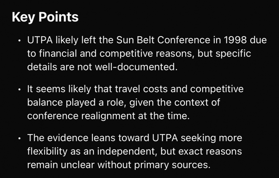 I bet that the first time AI was asked a question like “why did UTPA leave the Sunbelt in 1998?” 😂
