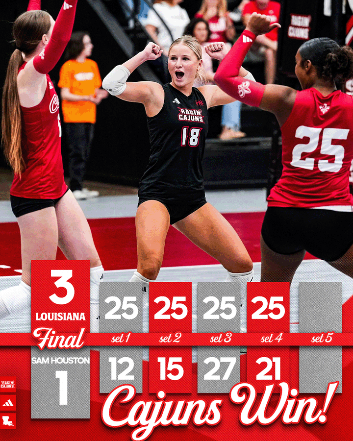 On a night where the offense could do no wrong, specifically opposite hitter Cailin Demps, the Louisiana Ragin' Cajuns Volleyball scored a 3-1 win (25-12, 25-15, 25-27, 25-21) over Sam Houston on Friday, September 5 at the SFA Tournament in Nacogdoches, Texas.
