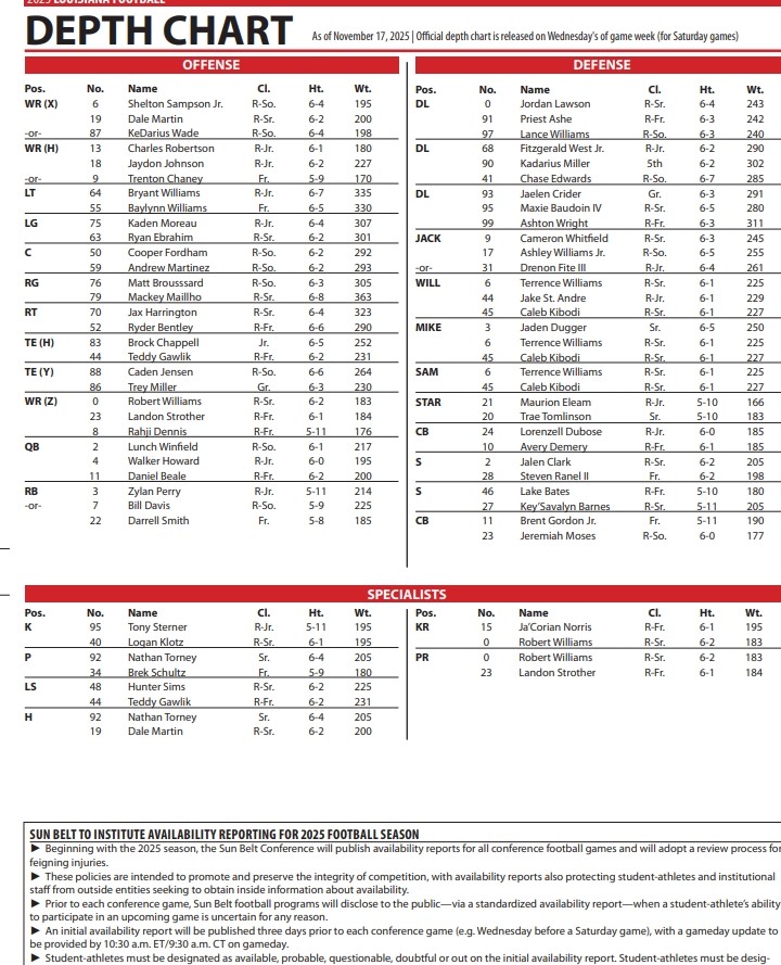 The Louisiana Ragin' Cajuns Football team continues its quest for an eighth consecutive postseason berth when it travels to Jonesboro, Ark., for a nationally-televised battle on Thursday against Sun Belt Conference rival Arkansas State at Centennial Bank Stadium.