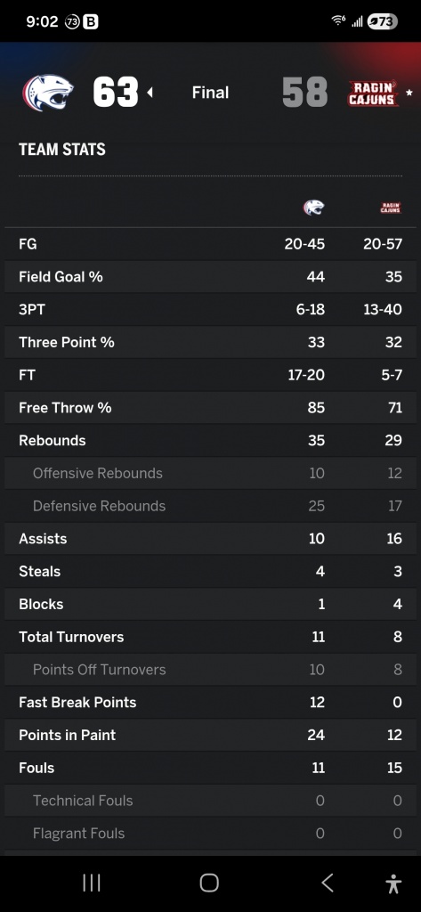 10. Default Re: Final MBB: Louisiana 58, USA 63