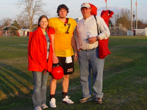From this spring, Louisiana's super capable backup -till Jerry Babb gets healthy- and current Ragin' Cajun starter at quarterback, Michael Desormeaux and his parents.
