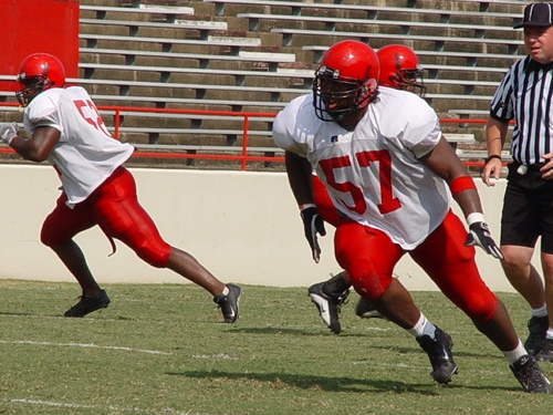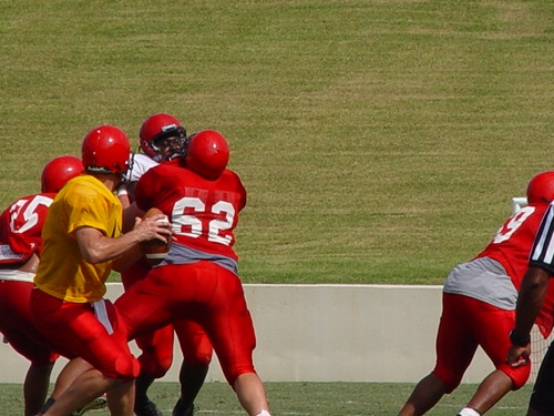 Quarterback Jerry Babb moved the first team (red) offense on the first series of the day, with the help of a long completion to Travis Smothers. Chester Johnson helped the white and red offenses pick-up first downs on the next two series.