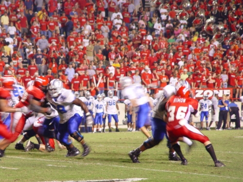 We took some shots at times but (Louisiana-Lafayette) stayed over the top and aren't going to let you have a shot at it. I thought the one Kerry got hurt on, it looked like he had possession and then when he hit the ground the ball came out. I thought he made a heckuva play on the ball. We took some shots but if they are going to play over the top then we take the other and I thought Clint (Marks) did a good job getting the ball to the others on that.