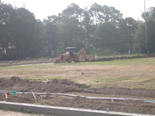 I Know that the Tech game is the main topic, at the moment capturing our attention, as it should be. Perhaps some photos showing the progress on the track/soccer staium may provide a brief interlude to that very disappointing loss last night. Progress seems to be a little slow, but there is evidence that it is progressing when compared to earlier photos. I will attempt to update the progress by photos on a monthly basis.