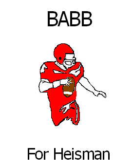 HOTBOUDIN, i guess you don't like the fact that i have had a BABB FOR HEISMAN shirt since his redshirt year. Never hurts to be optomistic.