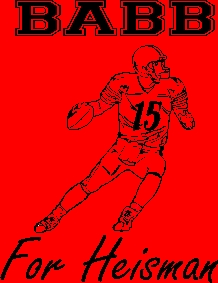 With all this superstisious stuff going on I would suggest a "Lynn for Heisman" shirt but our equipment would probably start failing. I can see it now, helmets splitting in half, football deflating in the middle of TD pass, bent face masks, etc.