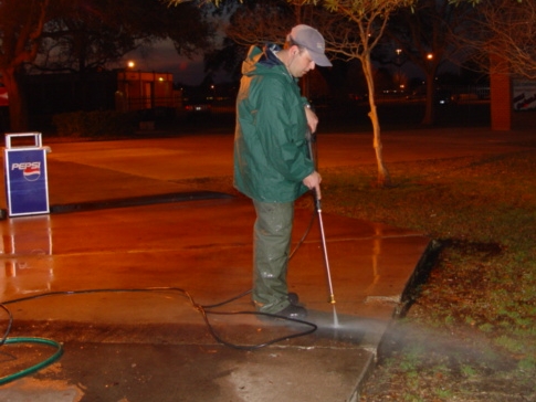 Between last night and this morning, I was able to complete the cement (3 base side) from the ice machine around the peanut stand up to the club house and the stairs leading up to the 3 base bleachers. I also pressure washed the field side of the brick backstop between the dugouts. There is still a small section in front of the concession stand and the wrap around walkway on the 1st base side.