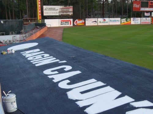 The problem probably goes back to when the dugouts were first built. If you notice the old raised templates, they were simply outlined. After putting in countless hours painting the black I doubt seriously he was reading the template but was instead simply taping the raised areas. After enough hours on the job I bet many of us would have made the same mistake.