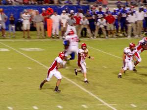Babb pitches the ball to Chester Johnson