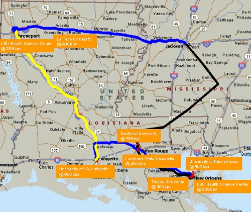 The loop runs from Baton Rouge, which will be the state's tie to the National Lambda Rail, the information super highway, through Lafayette, Alexandria, Shreveport, Ruston, Monroe, Jackson and Tylertown, Miss., and back to Baton Rouge. A separate loop links Baton Rouge and New Orleans.