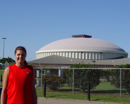 How does a young woman born in Budapest and raised in Moscow end up in a basketball uniform in south Louisiana in the first place?