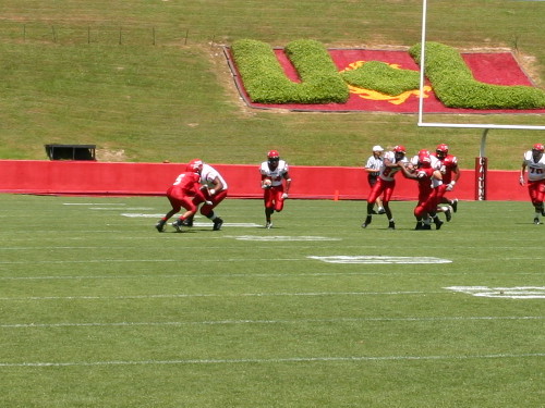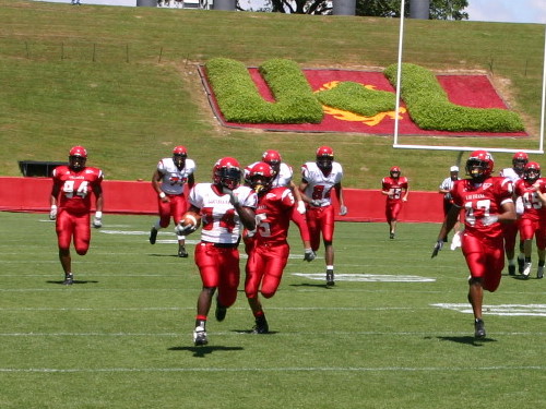 The 6-foot-1 running back swung out of the backfield, gathered in a pass from White Team quarterback John Hundley and then sped past blitzing defenders for a 57-yard gain to the Red Team 3.