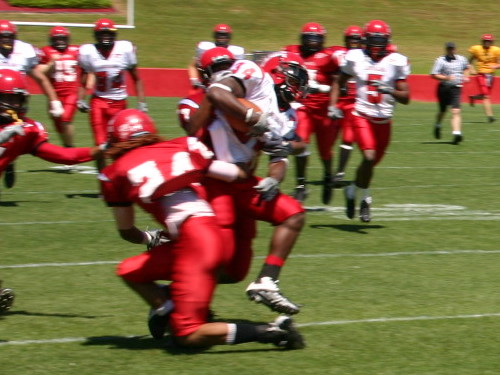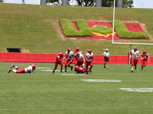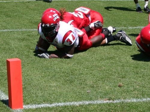 one of the things that impressed me most beside wallace's break away speed, was after he scored the touchdown he went and personally thanked everyone of his offensive linemen. That is the kind of team unity we need. Fenroy is the same way and i saw him thank his linemen numerous times last year. Those are the kind of guys that make a linemen want to block for them. Can you imagine being a def. cord. from another team and looking in the backfield to see desormeaux, fenroy and wallace. Try to stop that running attack. Not taking anything away from jerry b/c he is still the man. I'm so excited for football season! Our whole backfield looked pretty good. I geuss having such a good line will benefit everyone.