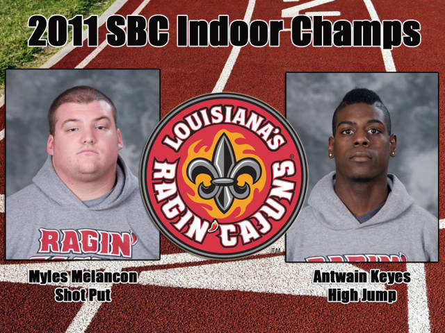 Two Louisiana Ragin' Cajuns collected individual titles, while another pair earned All-Conference in day one of the men and women's 2011 Sun Belt Conference Track & Field Indoor Championships held at the Convocation Center in Jonesboro, Ark.