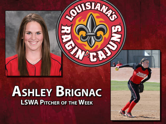 Ashley Brignac has earned her second weekly honor in as many days as she was named LSWA Pitcher of the Week on Tuesday.