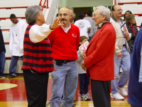 This conversation between assistant coach Rosalynn Landes, Joe Abraham and Alfred Lamson was concluded by Mr. Lamson offering/promising to pay for 2 banners. One was for the conference championship, and the second a banner to hang in the Cajun Dome for Kim Perrot.