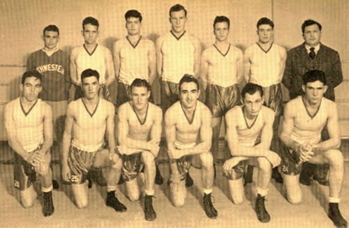 Row two: Ed Cooley, Andrew Crow, James Williams, Louis Campbell, Wilson Landry, Fred Logsden, and Coach Mitchell