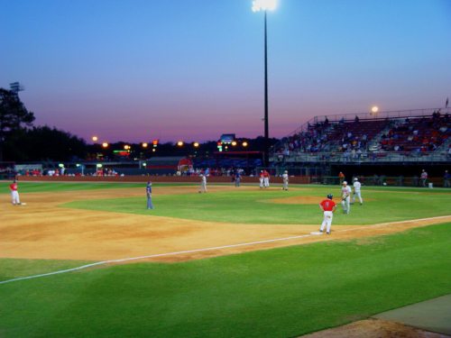 Hope fades for Sam Houston State as the sun goes down and Louisiana loads the bases. Louisiana went on to win 14-5